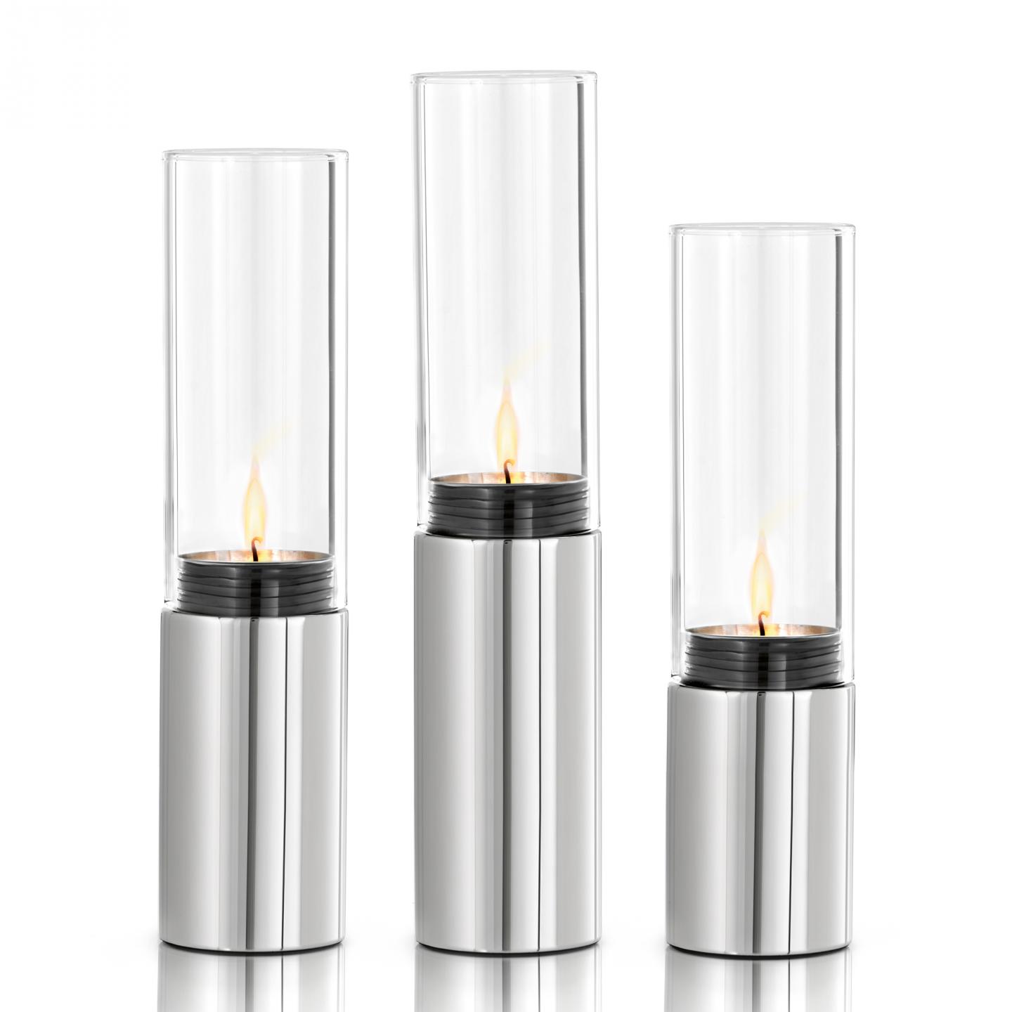 Elegantní a krásný svícen FARO ozáří večerní tabuli tlumeným světlem a vytvoří romantickou atmosféru. Leštěná nerezová ocel se skvěle doplňuje s čirým sklem a gumička, která drží stínidlo na svém místě, skvěle podtrhuje jemnou eleganci svícnu.