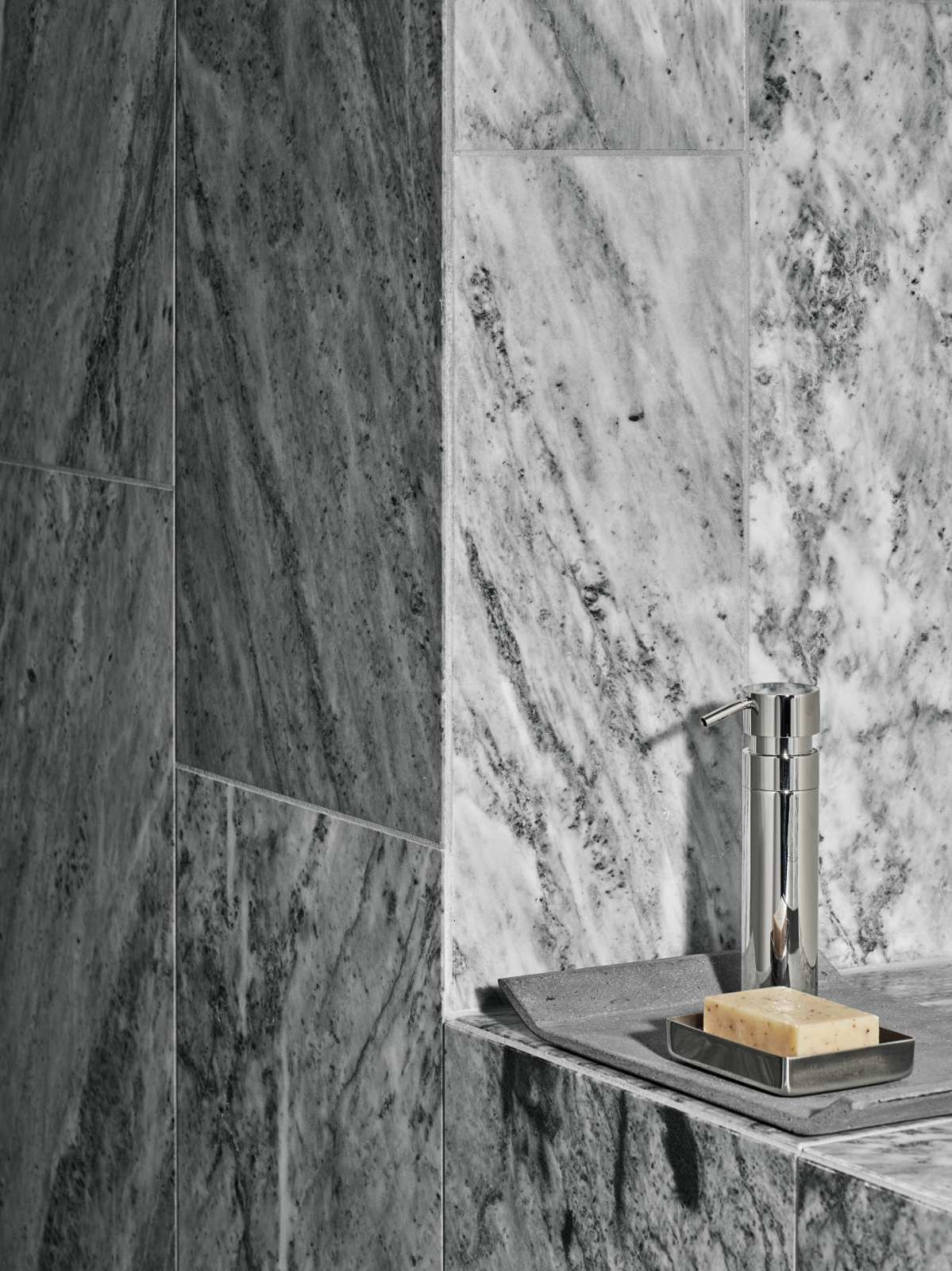 Přirozeně porézní materiál, mírné barevné odchylky a další drobné nedokonalosti dávají vyniknout jedinečnosti každého kusu.