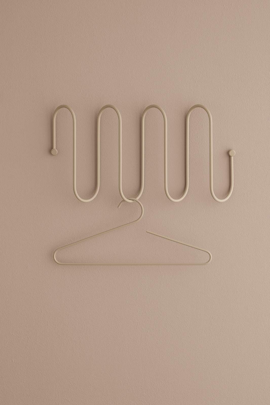 Tak kde je háček? Zde rozhodně žádný nehledejte! Díky zakřivenému tvaru i obyčejný háček může působit jako velice zajímavá dekorace do interiéru. Spodní křivka může být použita k zavěšení více ramínek na kabáty nebo na pověšení šátků, zatímco horní křivka může být použita k věšení bund, čepic nebo tašek. Výsledkem je, že věšák vyrobený z práškově lakované oceli, lze použít nejen různými způsoby, ale také funguje jako konstrukční prvek na vaší zdi. Věšák na šaty lze namontovat na zeď pomocí dvou kulatých dorazů s magnetickým krytem.