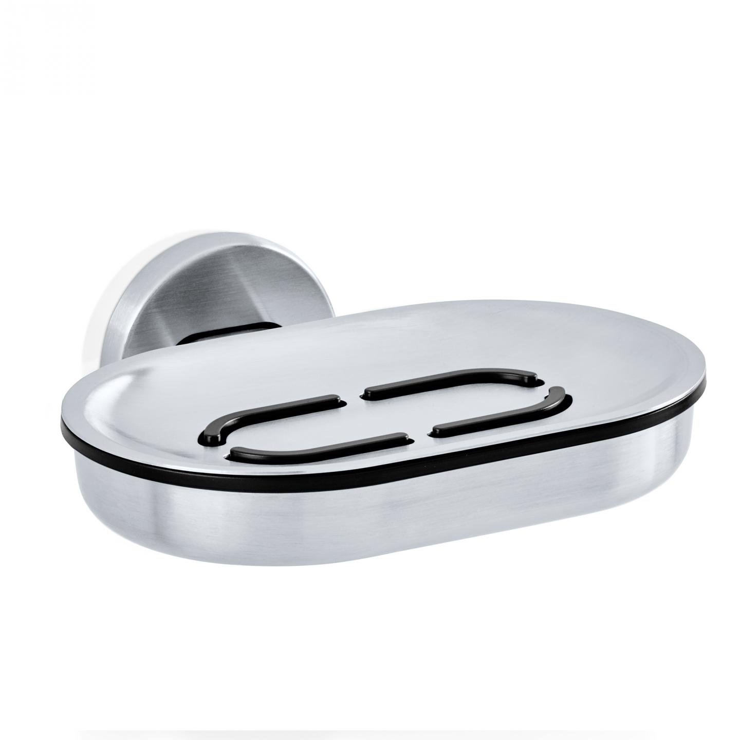 Nástěnná miska na mýdlo z řady AREO je vyrobena z matné nerezové oceli v kombinaci s černým plastem. Díky použitým materiálům působí velmi moderně a elegantně a hodí se do světlých i tmavých koupelen. Plastová miska na odkapávání vody lze snadno vyjmout a vyčistit.