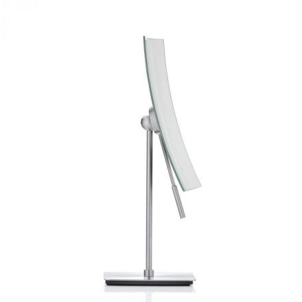 Kosmetické zrcadlo VISTA vyrobené z matné niklované oceli a skla s pěnovou podložkou. Zrcadlo má pohyblivý kloub pro snadné a přesné nastavení. Ideální pomocník při kosmetické péči s pětinásobným zvětšením zobrazení. Praktické vyjmutí zrcadla ze stojanu umožní použití jako zrcadlo do ruky.