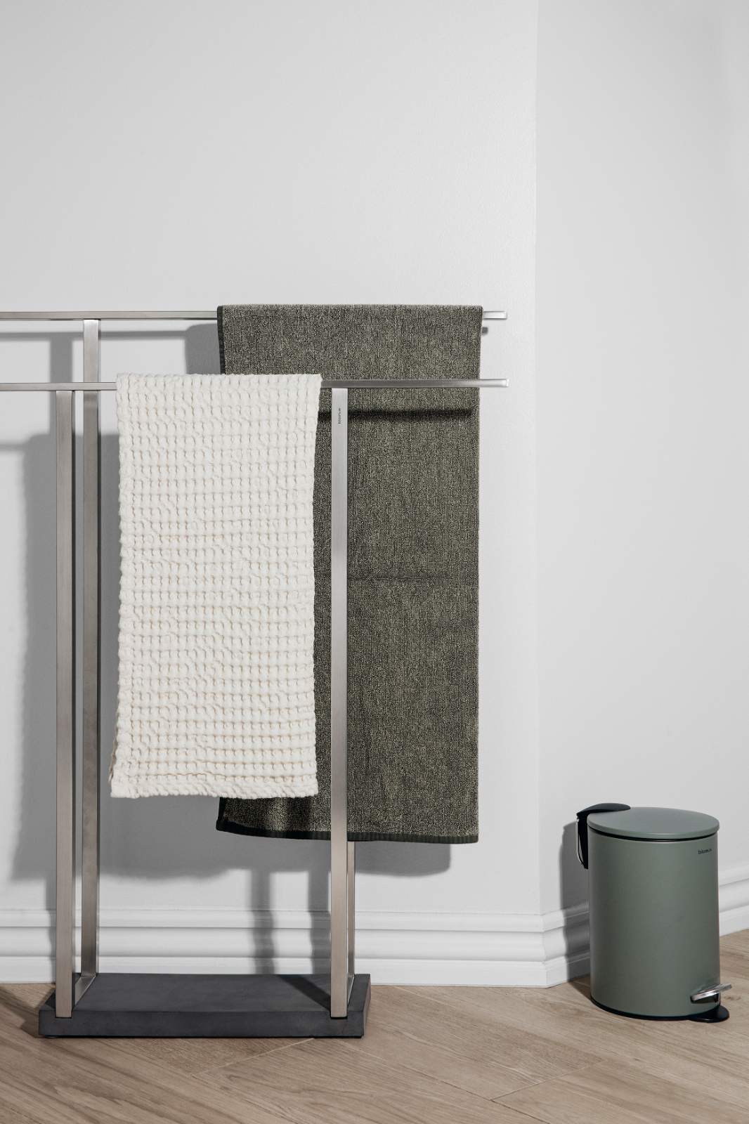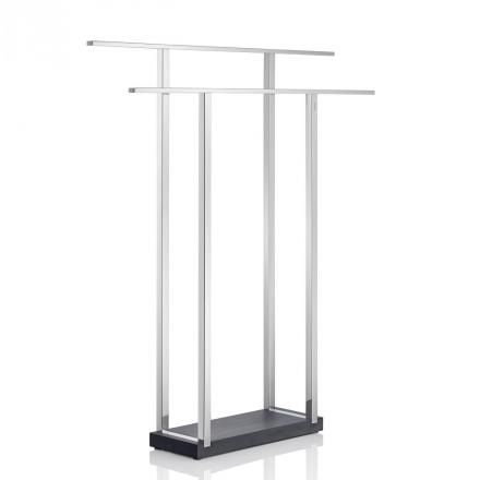 Stylový stojan na ručníky MENOTO v decentním designu perfektně doplňuje moderní koupelny. Podstavec z černého polystonu kontrastuje s chladným lesklým nerezem a dodává stojanu luxusní vzhled. Stojan můžete jednoduše postavit tam, kam zrovna potřebujete, a mít tak ručníky vždy suché a po ruce.