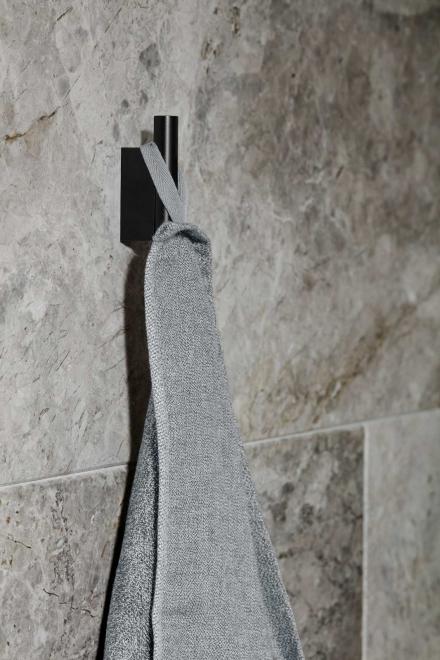 Elegantní luxus s temnou duší: Kolekce MODO, vyrobená z titanové nerezové oceli, promění vaši koupelnu ve wellness chrám. Minimalistický černý háček udrží Vaše osušky či župany na svém místě. Černý titanový povlak je nejen příjemný na dotek, ale také odolný vůči korozi a poškrábání.
