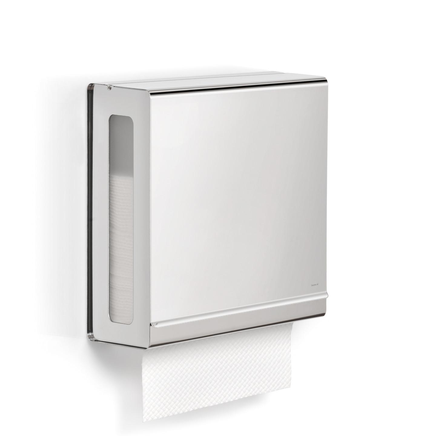 Zásobník na papírové ručníky NEXIO je vyrobený z leštěné nerezové oceli. Na bocích má praktická okénka z plexiskla, díky kterým budete mít přehled, kdy je třeba papírové ručníky doplnit. Zásobník oceníte nejen v domácnosti, ale například i v kanceláři.