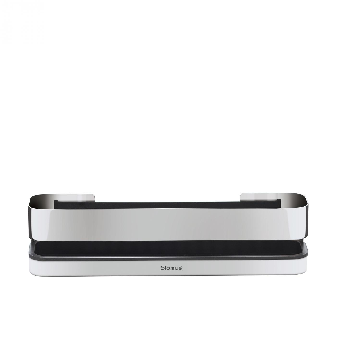 Nástěnná polička NEXIO se stane skvělým pomocníkem v každé koupelně. Je vyrobená z leštěné nerezové oceli, a tudíž se hodí do všech typů koupelen. Ať už potřebujete mít po ruce cokoliv, široký gumový pásek uvnitř udrží i drobnosti, jako jsou žiletky nebo menší tuby s kosmetikou. Dno poličky má vyjímatelnou gumovou protiskluzovou vložku, kterou v případě potřeby snadno vyndáte a opláchnete.