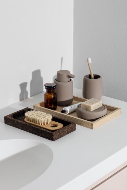 Zaoblené okraje, jemný tvar a příjemně měkká povrchová úprava: kelímek na zubní kartáčky SONO zaujme svým jedinečným designem. Keramika potažená silikonem již na první pohled působí luxusně a na dotek je velmi příjemná.
