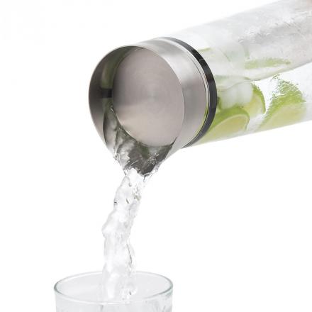 Karafa na vodu ACQUA je vyrobená v minimalistickém a vynalézavém designu v elegantní kombinaci skla, matného nerezu a černé gumy. Její jednoduchý úzký tvar bude ozdobou každého jídelního stolu. Díky tvaru se krásně vejde do dveří převážné části ledniček. Zdokonalené nerezové víko má zabudovaný výlev pro jednoduché zacházení, neodkapává, a tak můžete lehce nalévat i do menších skleniček. Ovoce i ledové kostky zůstanou díky víčku bezpečně uvnitř karafy.