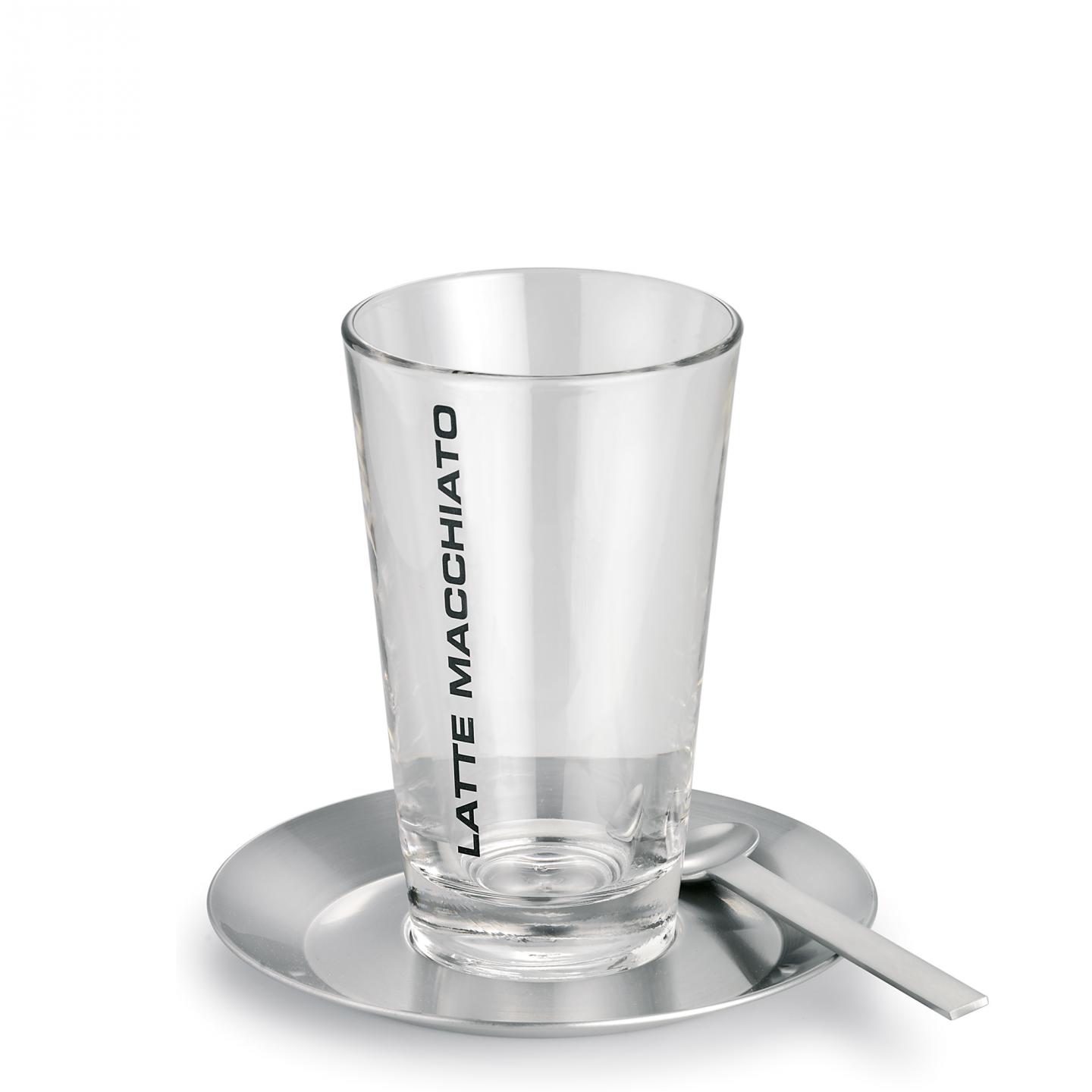 Sada latte macchiato je elegantní a krásně navržená sada obsahující šálek s podšálkem a lžičkou o rozměrech 15 cm (= průměr podšálku); 15,5 cm (= výška sklenice); 350 ml (= objem šálku). Tento set se dokonale hodí do každé moderní domácnosti, sklenice skvěle padne do ruky a navíc je vyrobena ze žáruvzdorného skla. Podšálek a lžička jsou pak vyrobeny z vkusné matné nerezové oceli, takže jsou velmi odolné vůči potravinovým kyselinám a tvarové nestabilitě.