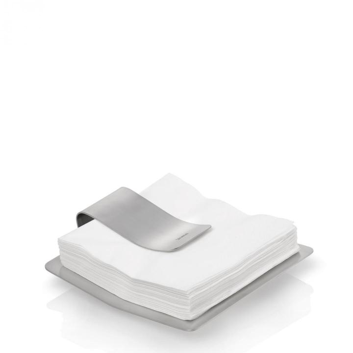 Držák na ubrousky SCUDO vyrobený z matné nerezové oceli má stylový a jednoduchý design, který dotváří prostřený jídelní stůl. Díky praktickému klipu udrží ubrousky na svém místě. Díky použitému materiálu lze použít i venku a nemusíte se bát, že by se vám ubrousky rozletěly.