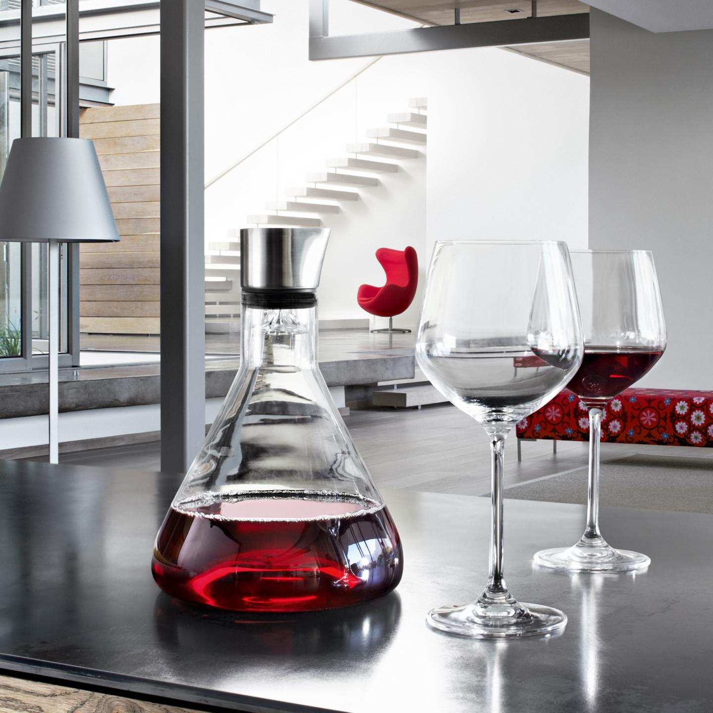 Dekantovací karafa na víno DELTA je sestavena perfektně pro všechny příležitosti. Může se pyšnit průhledným sklem, nerezovou horní částí, silikonem a filtrem s rozptylovačem. Díky důmyslnosti výrobců a integrovanému filtru zachytí karafa případný korek a sediment ve víně. Také díky praktickému nerezovému rtu se nemusíte bát o bílý ubrus, který by se mohl ušpinit po ukápnutí červeného vína, a můžete vesele rozlévat dál. Díky navrženému rozptylovači víno stéká po stranách a dochází tak k dokonalému provzdušnění, což napomáhá maximálnímu prožitku.