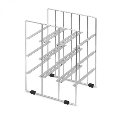Regál na lahve PIRALE je vyrobený z matné oceli a je skvělým doplňkem Vaší vinotéky. Čistý a minimalistický design má i svou praktickou stránku. Vzadu má regál neproniknutelnou mřížku, aby lahve nemohly vypadnout ven. Ve spodní části je obohacen o gumové kroužky, které zabraňují poničení podlahy a jiných povrchů pod konstrukcí. Do regálu se vejde maximálně 12 Vašich oblíbených vín, proto vybírejte poctivě.