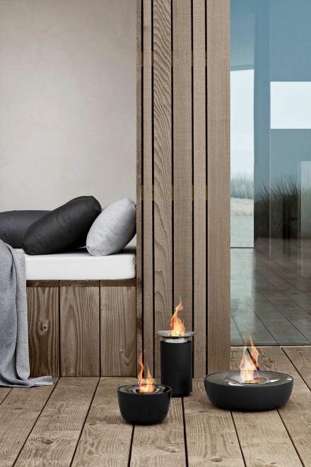 Venkovní svícen FUOCO je vyroben z mrazuvzdorné keramiky a leštěné nerezové oceli. Elegantní černá barva, chladné vzezření kovu a hřejivé plameny ohně vytvoří jedinečnou romantickou atmosféru na každé terase, zahradě i balkonu. Díky odolnosti materiálu je možné svícen používat i v zimě.