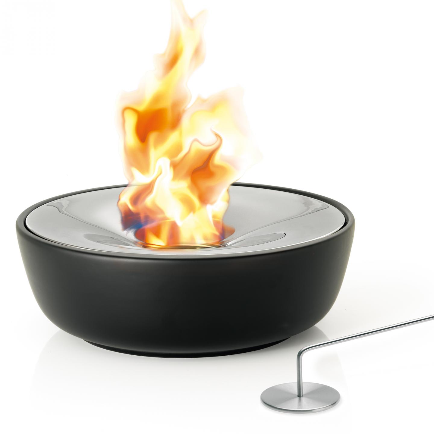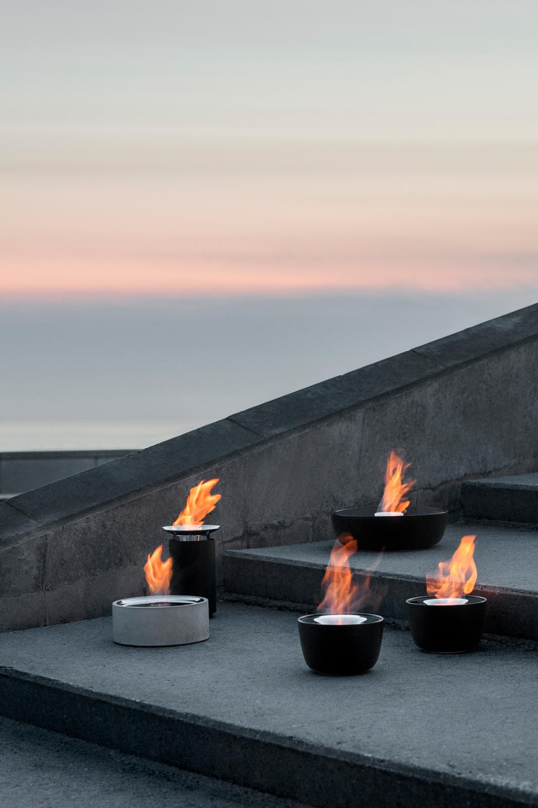 Venkovní svícen FUOCO je vyroben z mrazuvzdorné keramiky a leštěné nerezové oceli. Elegantní černá barva, chladné vzezření kovu a hřejivé plameny ohně vytvoří jedinečnou romantickou atmosféru na každé terase, zahradě i balkonu. Díky odolnosti materiálu je možné svícen používat i v zimě.