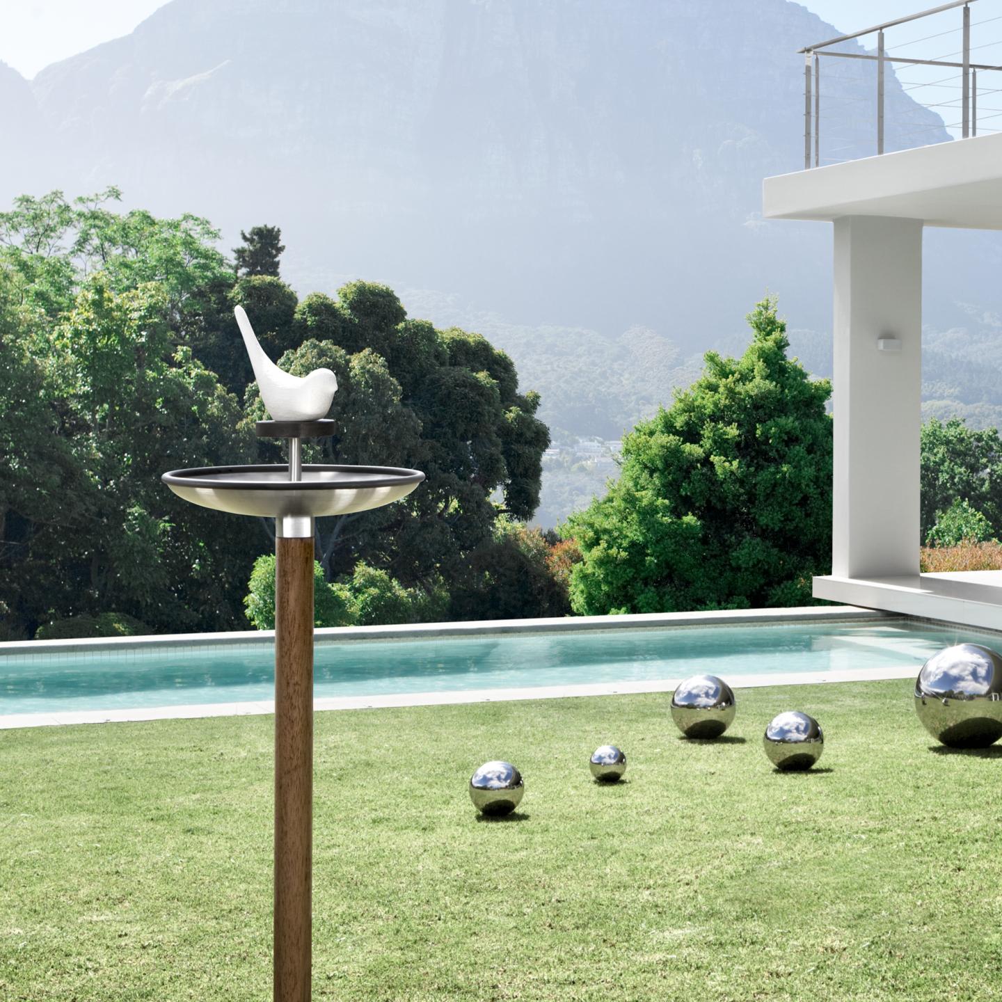 Krmítko pro ptáky FUERA je vyrobené z matné nerezové oceli a tvrdého dřeva. Kombinace těchto materiálů zajišťuje nejen luxusní vzhled, ale i odolnost vůči nepříznivým vlivům počasí. nepopiratelnou výhodou tohoto krmítka je, že jej na léto nemusíte sklízet; naplňte jej vodou a bude sloužit jako pítko! V létě bude lákat ptáčky průzračnou vodou ať už na pití, nebo na osvěžující koupel. V zimě pak ptáčky naláká ptačí zob skrytý pod nerezovou stříškou.