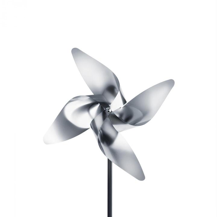 Čtyřlopatkový větrník VIENTO je vyrobený z odolné matné nerezové oceli. Stylový a nadčasový design je inspirovaný klasickým větrníkem z dětských her. Okouzlující moderní doplněk vaší zahrady nebo terasy, uhrančivě oslní děti i dospělé. Málokdo ví, že větrník není jen designovým doplňkem, ale i praktickým produktem. Větrník při otáčení vydává nepravidelné zvuky a vibrace, které vadí krtkům. Když navíc umístíte větrník ke kovové trubce v zemi, vibrace proniknou mnohem dále.