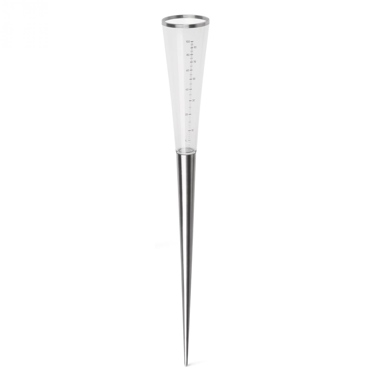 Stylový srážkoměr CAMPO potěší každého amatérského meteorologa a zahradní nadšence. Je vyroben z matné nerezové oceli a akrylátového skla, takže je velmi odolný vůči rozbití i rozmarům počasí. Díky zúženému kovovému stojanu jej snadno zapíchnete do země nebo venkovního květináče.