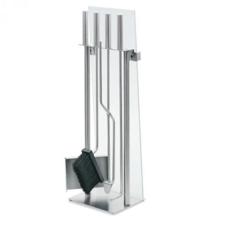 Sada krbového nářadí se stojanem CHIMO dokazuje, že v jednoduchosti je krása. Stojan s krbovým nářadím je vyrobený z matné nerezové oceli a matného skla. Jednoduchý a moderní design obohatí každá krbová kamna. Každý kousek nářadí má svou rukojeť, za kterou je pověšený do stojanu.