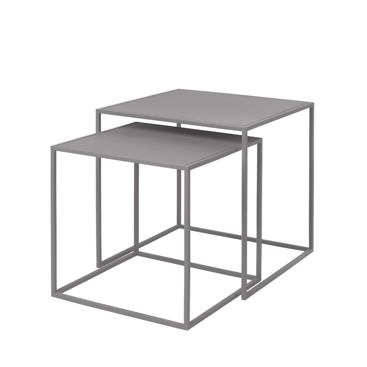 Hranaté, praktické, krásné! Souprava dvou stolků FERA ve tvaru krychle je vyrobená z odolné práškované oceli s matným, mírně zdrsněným povrchem. Stolky FERA jsou praktické i do menších bytů, můžete je jednoduše zasunout do sebe a ušetřit tak místo.