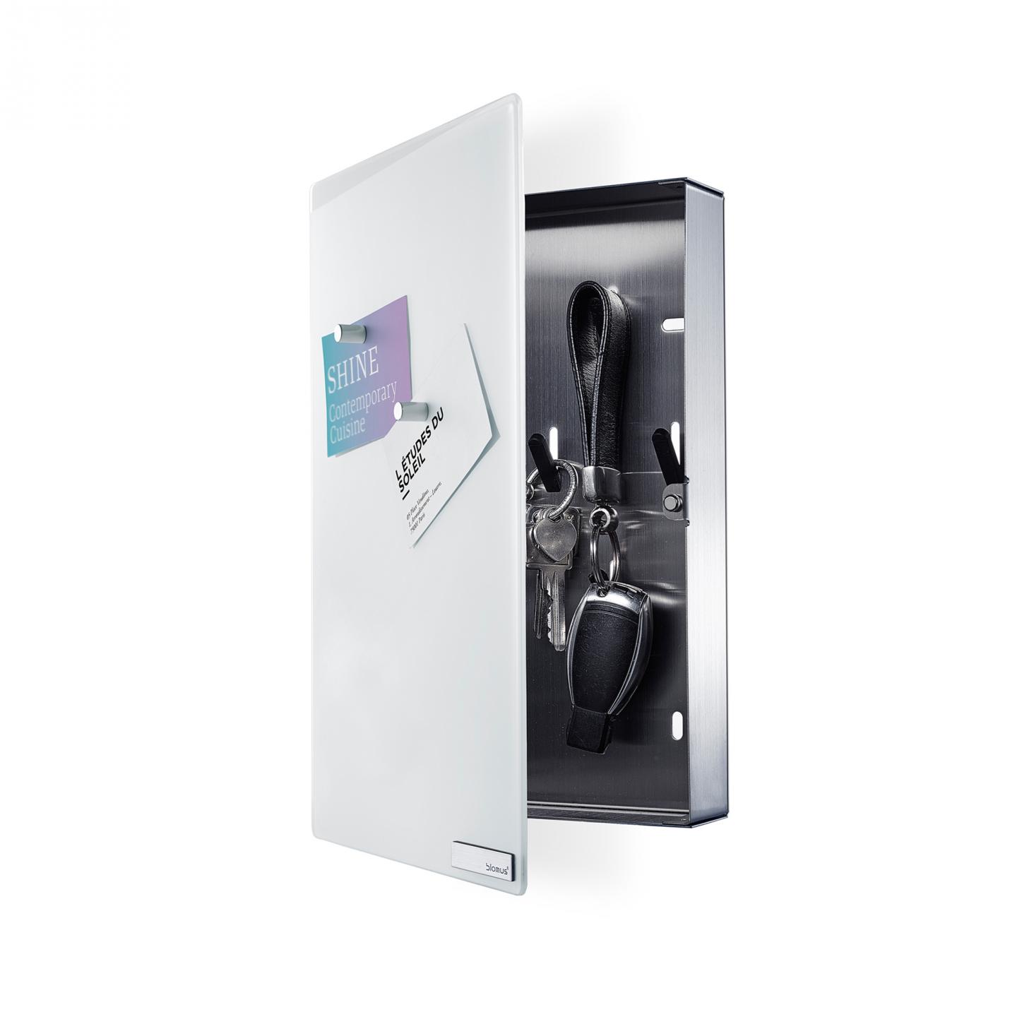 Skříňka na klíče VELIO je moderní a přitom velmi praktická. Její jedinečný design Vás zaujme na první pohled - lesklá dvířka jsou magnetická, a tak na ně můžete připevnit vzkaz, který při odchodu z domova určitě nepřehlédnete. Vnitřek skříňky pak poskytuje dostatek prostoru i pro větší množství klíčů.