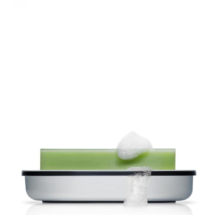 Miska na mýdlo z řady AREO je vyrobena z matné nerezové oceli v kombinaci s černým plastem. Díky použitým materiálům působí velmi moderně a elegantně. Plastová miska na odkapávání vody lze snadno vyjmout a vyčistit.