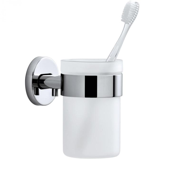Skleněný kelímek na zubní kartáčky AREO je vyrobený z leštěného nerezu a pískovaného skla; kombinace těchto materiálů působí velmi vkusně a elegantně. Díky připevnění na zeď již nemusíte řešit problémy s převrženými kelímky.