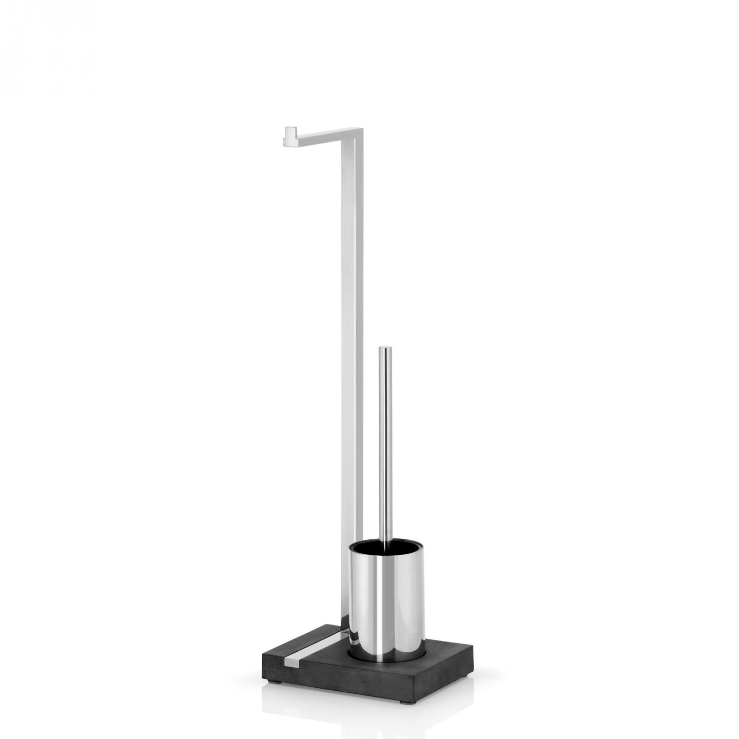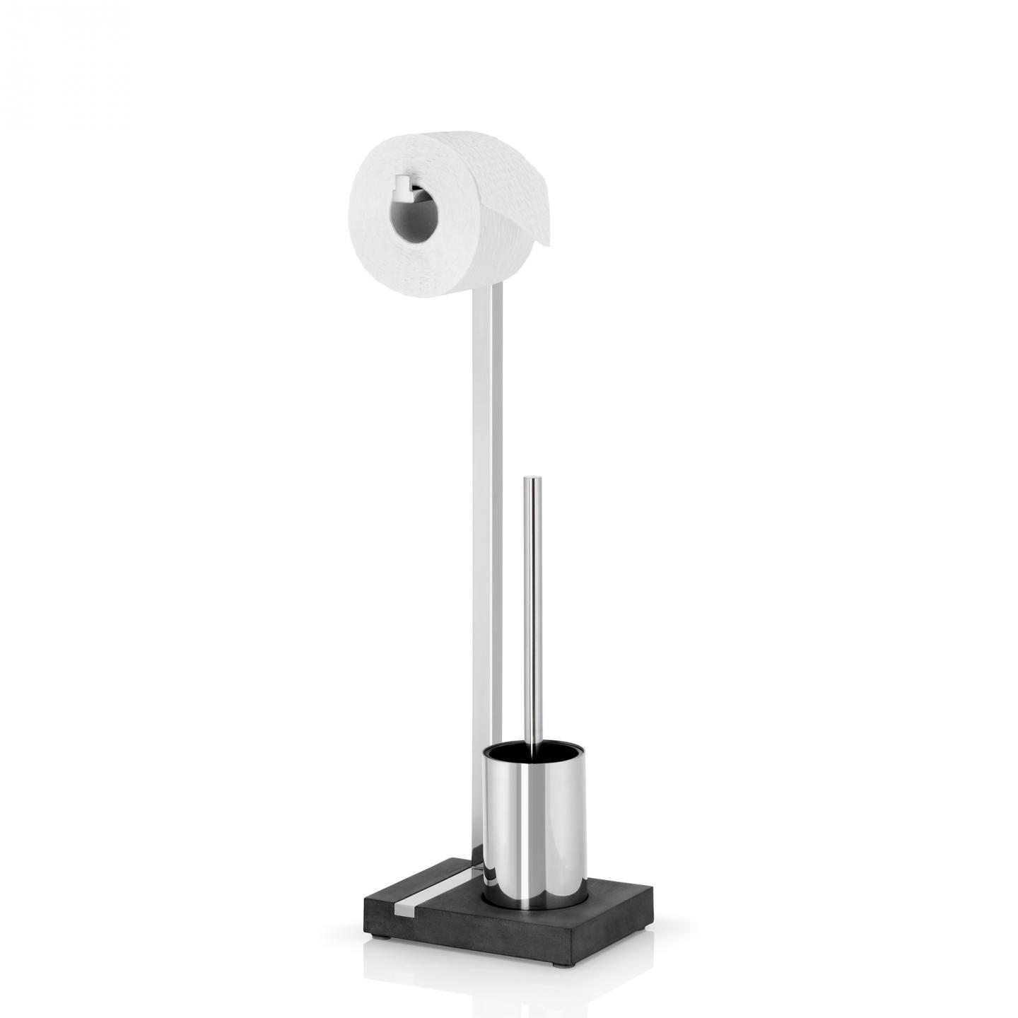 Stojan na toaletní papír a WC kartáč MENOTO je vyroben z lesklé nerezové oceli, která kontrastuje s černým polystonem - materiálem podobným kamenině. Díky kombinaci dvou praktických pomocníků na toaletu si najde cestu do každé domácnosti.