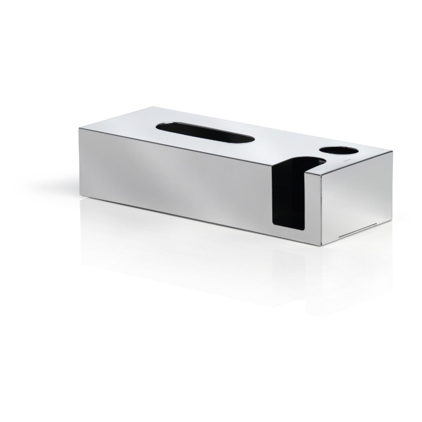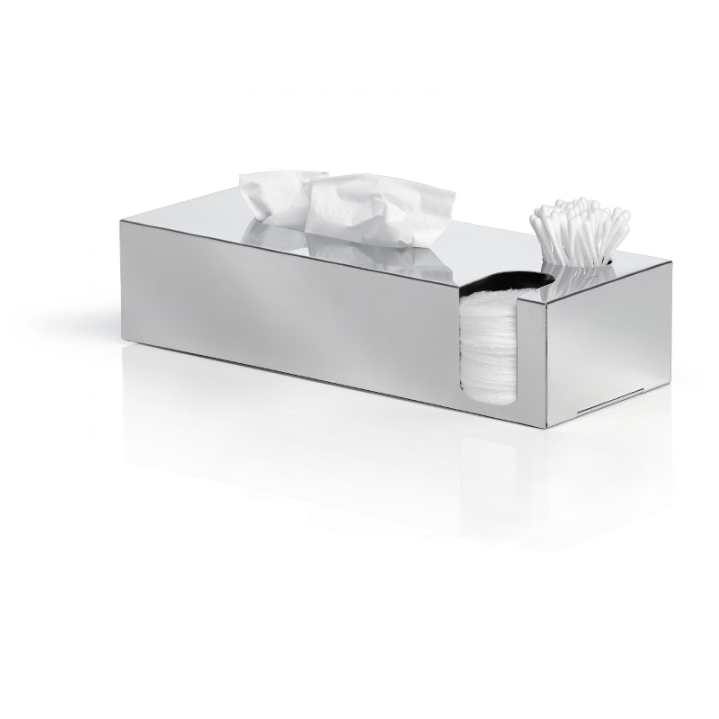 Díky boxu NEXIO z leštěné nerezové oceli hravě udržíte pořádek ve své koupelně. Mimo praktičnost je box i krásným estetickým doplňkem, do kterého lze vložit standardní balení papírových kapesníčků, vatové odličovací tampony a vatové tyčinky.