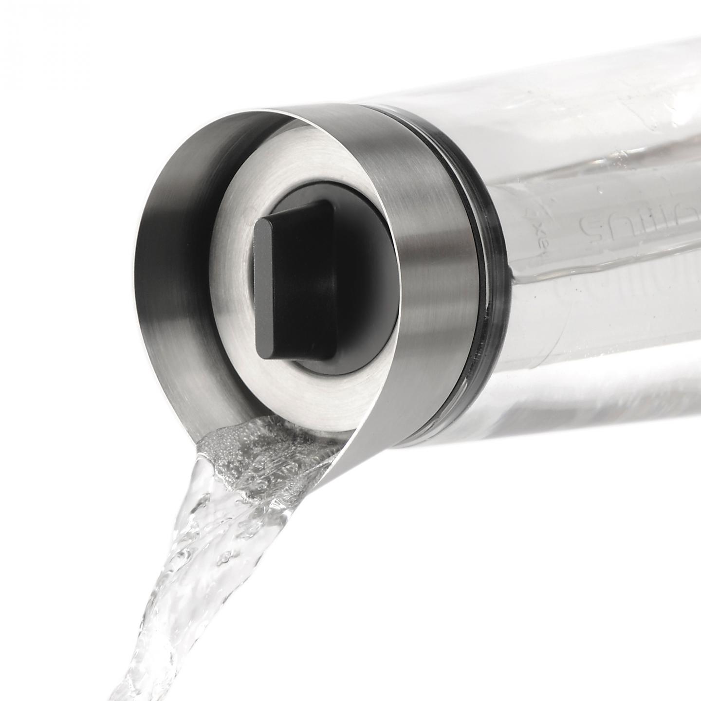 Karafa na vodu ACQUA je vyrobená v minimalistickém a vynalézavém designu v elegantní kombinaci skla, matného nerezu a černé gumy. Její jednoduchý úzký tvar bude ozdobou každého jídelního stolu. Díky tvaru se krásně vejde do dveří převážné části ledniček. Zdokonalené nerezové víko má zabudovaný výlev pro jednoduché zacházení, neodkapává, a tak můžete lehce nalévat i do menších skleniček.