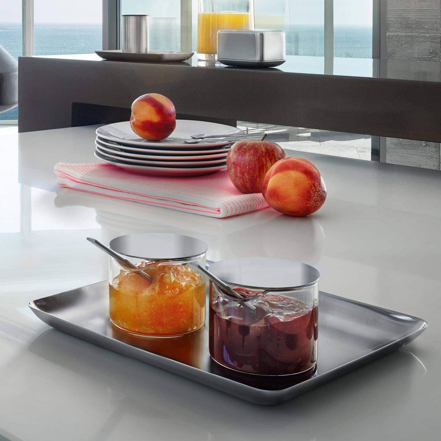 Skleněná dóza na marmeládu BASIC okouzlí svou jednoduchostí a účelností. Je ideálním pomocníkem pro stylové servírování džemů i pomazánek. Ve skleněné dózičce s matným nerezovým víčkem je praktický otvor pro lžičku. Dokonale se doplňuje s ostatními výrobky ze série BASIC.