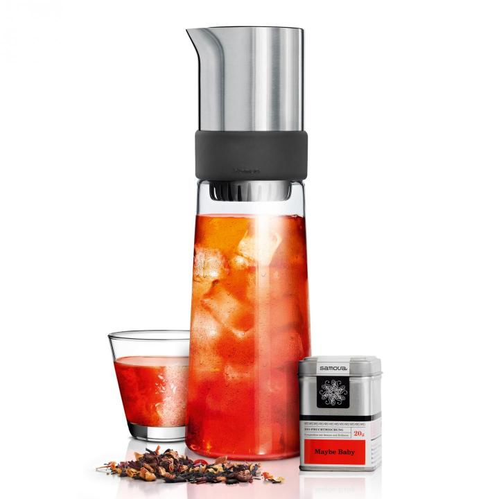 Karafa na výrobu ledového čaje TEA-JAY® je vyrobená z matné nerezové oceli a tepelně odolného skla v elegantním nadčasovém designu. Plastová vložka slouží jako zásobník čaje a zároveň jako sítko. Díky unikátnímu designu této karafy již nepotřebujete žádné jiné pomůcky pro výrobu ledového čaje!
