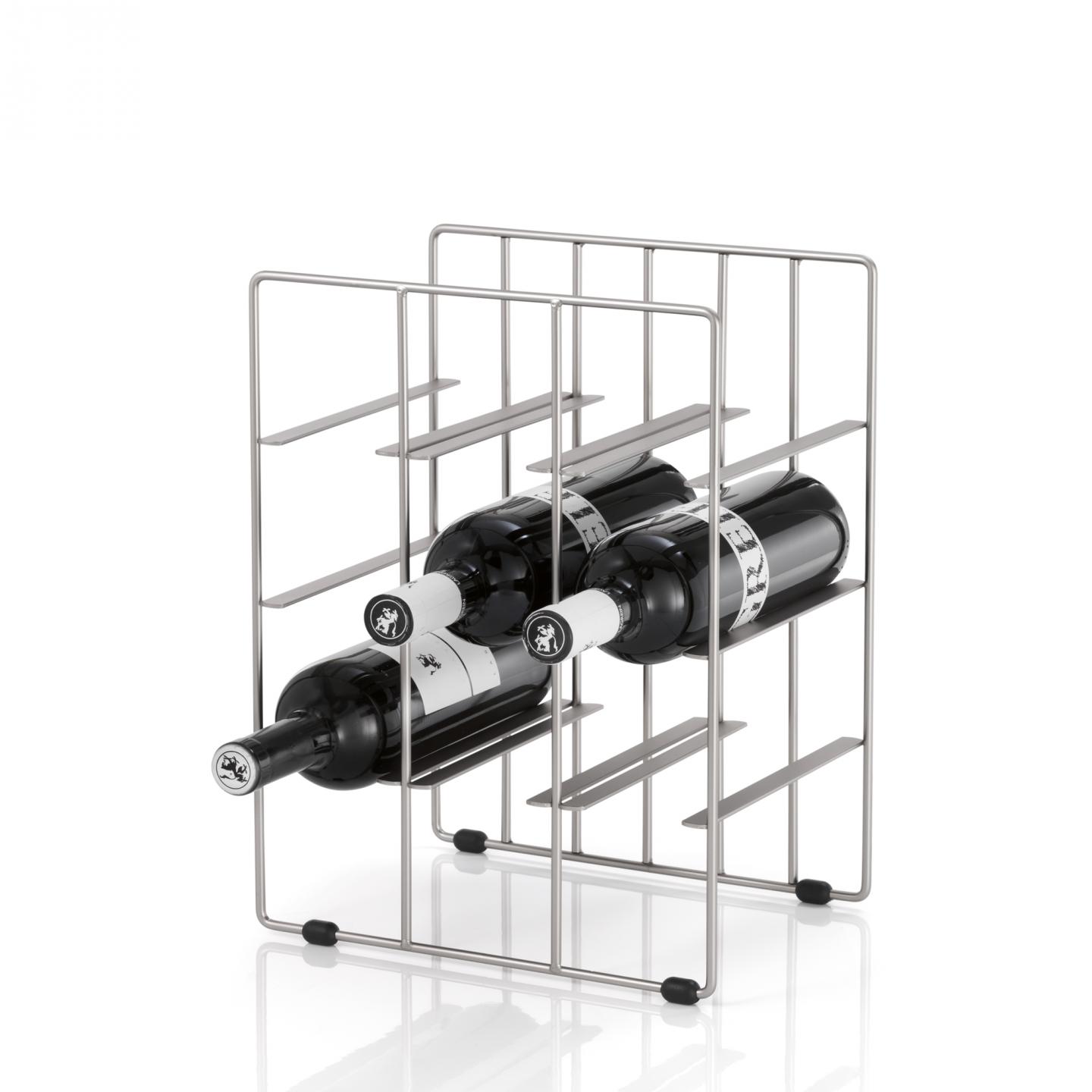 Regál na lahve PIRALE je vyrobený z matné oceli a je skvělým doplňkem Vaší vinotéky. Čistý a minimalistický design má i svou praktickou stránku. Vzadu má regál neproniknutelnou mřížku, aby lahve nemohly vypadnout ven. Ve spodní části je obohacen o gumové kroužky, které zabraňují poničení podlahy a jiných povrchů pod konstrukcí. Do regálu se vejde maximálně 12 Vašich oblíbených vín, proto vybírejte poctivě.