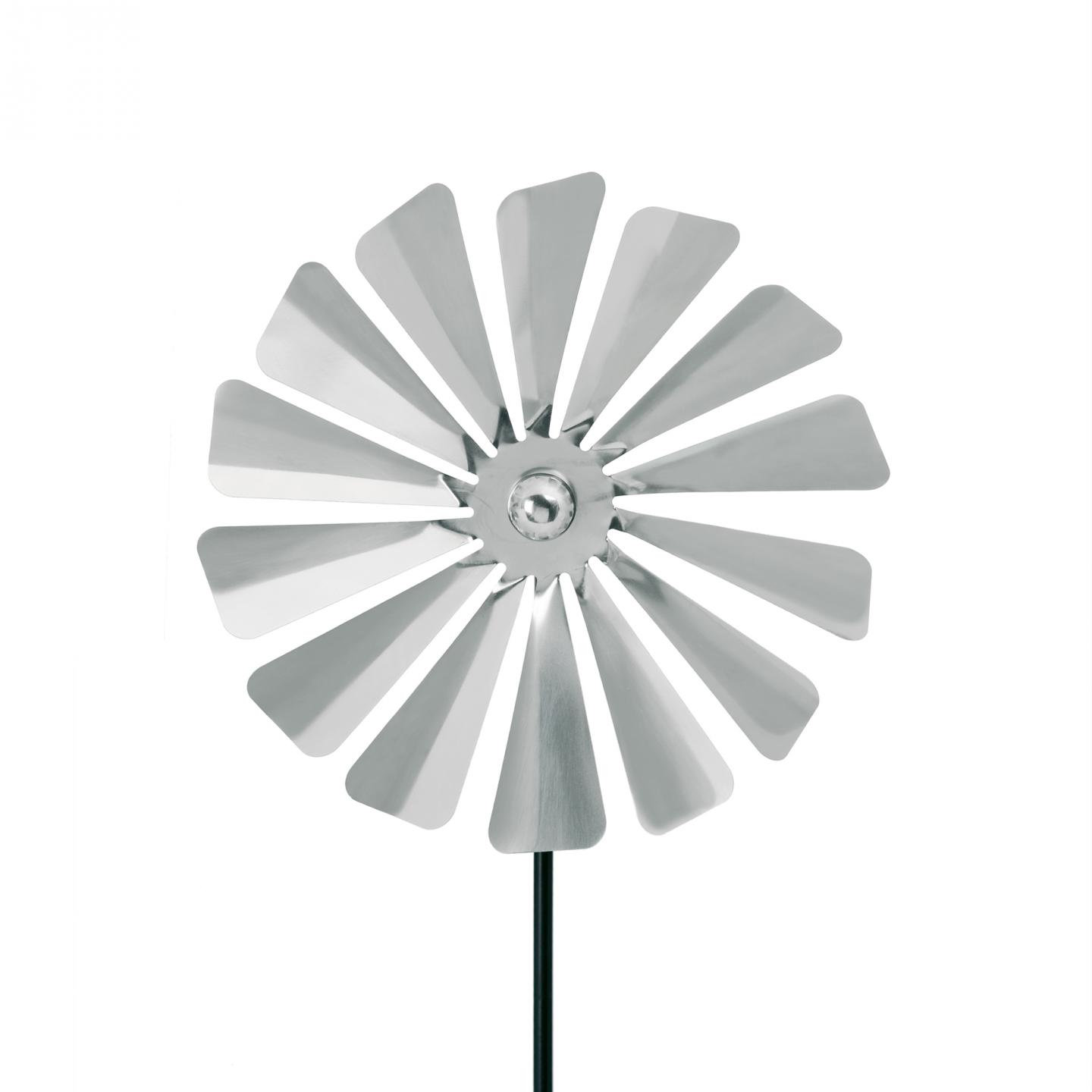 ťrnáctilopatkový větrník VIENTO je vyrobený z odolné matné nerezové oceli. Stylový a nadčasový design je inspirovaný klasickým větrníkem z dětských her. Okouzlující moderní doplněk vaší zahrady nebo terasy, uhrančivě oslní děti i dospělé. Málokdo ví, že větrník není jen designovým doplňkem, ale i praktickým produktem. Větrník při otáčení vydává nepravidelné zvuky a vibrace, které vadí krtkům. Když navíc umístíte větrník ke kovové trubce v zemi, vibrace proniknou mnohem dále.